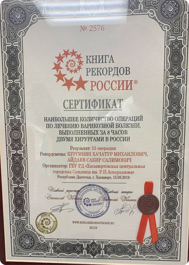 Рекордсмен России по количеству выполненных операций.(53 операции на венах за 8 часов)