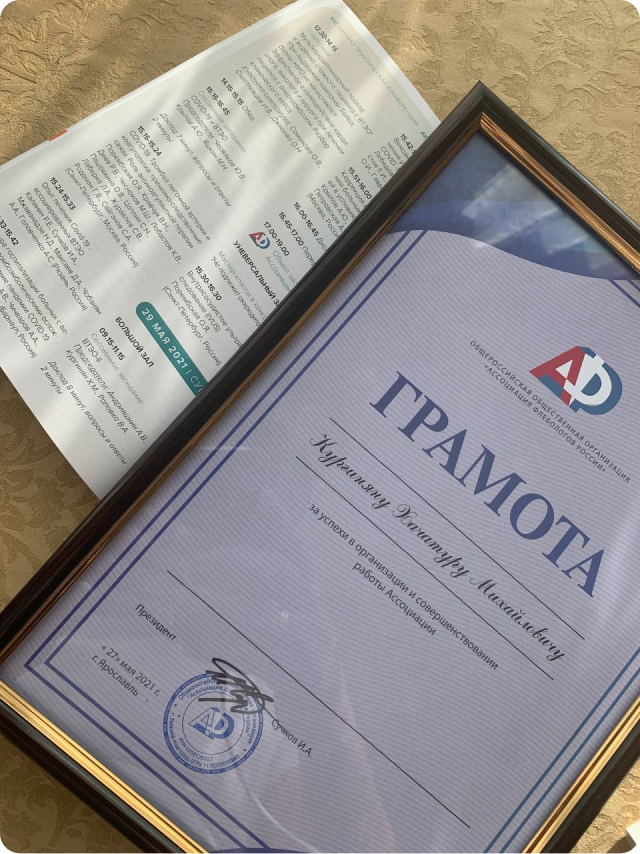 Грамота за успехи в организации и совершенствовании работы Ассоциации флебологов